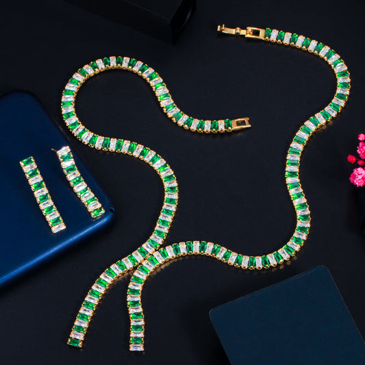 Fashion 18k Gold Plated White Red Cubic Zircon Drop Jewelry Sets for Women Earrings Necklace Bridal Party Costume Accessories